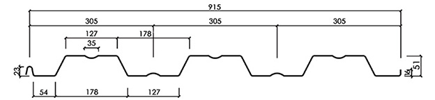 YFD51-305-915樓承板采用_鍍鋅板為原料,經數控設備輥壓成型的新型建筑材料。開口樓承板應用廣泛:大型廠房、倉庫、加工車間、糧棉庫、交易市場、車棚等建筑及建筑圍擋板。